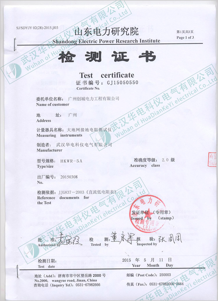 HKWR-5A大地網(wǎng)接地電阻測試儀檢測證書