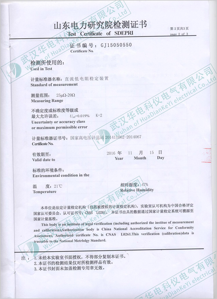 HDHL-100回路電阻測試儀校驗證書