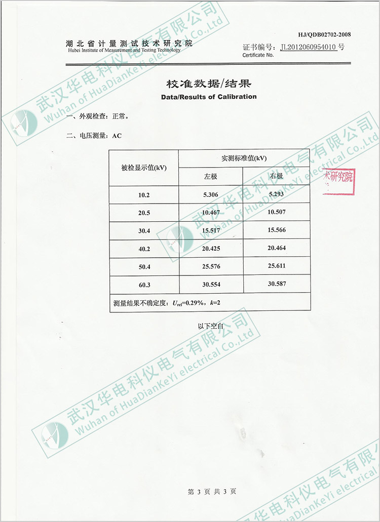 HKJJC-1油介電強(qiáng)度測試儀校準(zhǔn)證書