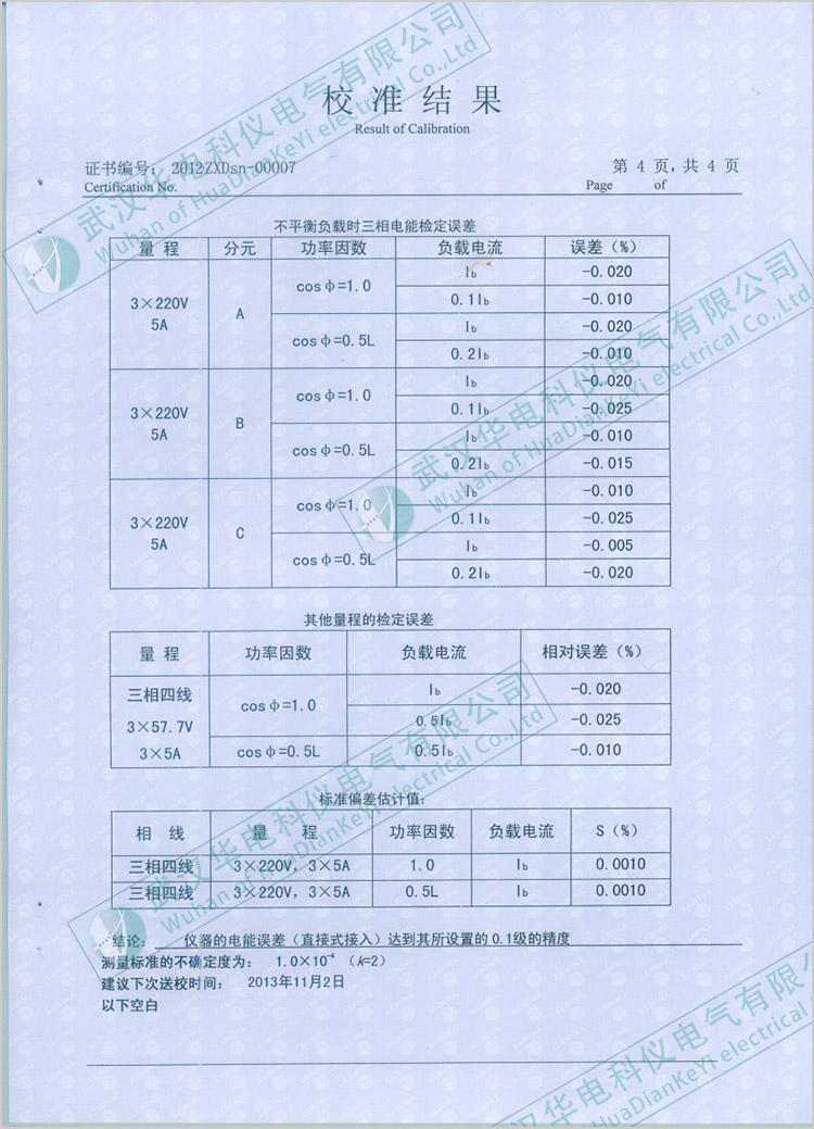 HKYM-3三相電能表現(xiàn)場(chǎng)檢驗(yàn)儀校準(zhǔn)證書