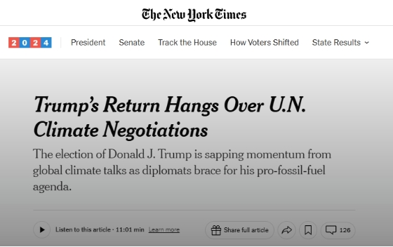 當(dāng)?shù)貢r(shí)間11月8日,《紐約時(shí)報(bào)》援引六名消息人士稱,特朗普過(guò)渡團(tuán)隊(duì)已準(zhǔn)備了一系列關(guān)于氣候和能源的行政命令和公告,其中包括再次讓美國(guó)退出《巴黎協(xié)定》。
