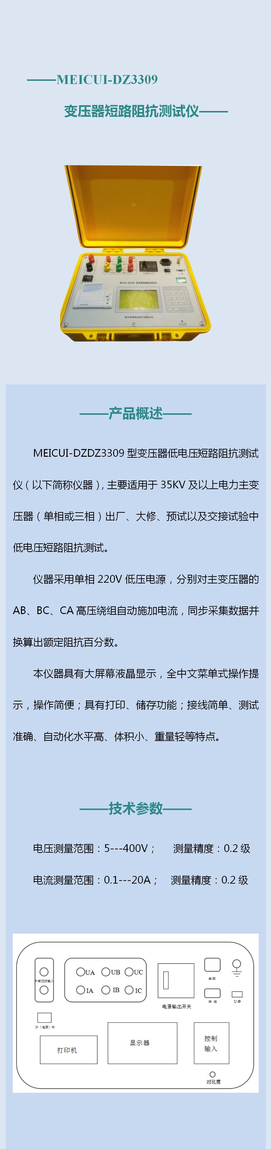 MEICUI-DZ3309型變壓器低電壓短路阻抗測試儀產(chǎn)品簡介: